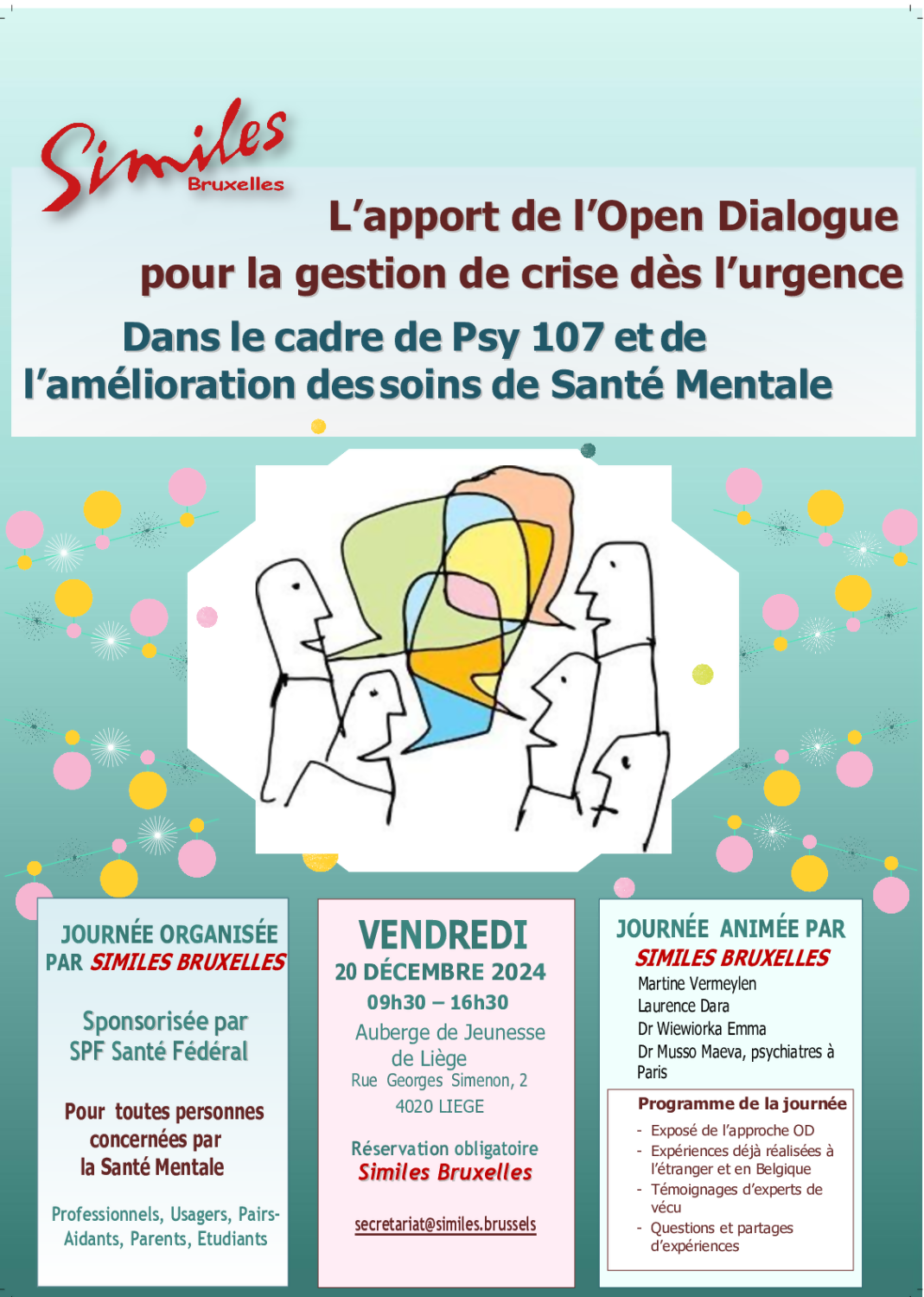 Une journée organisée par Similes Bruxelles le vendredi 20 décembre 2024 entre 9h30 et 16h30 à l'Auberge de Jeunesse de Liège.