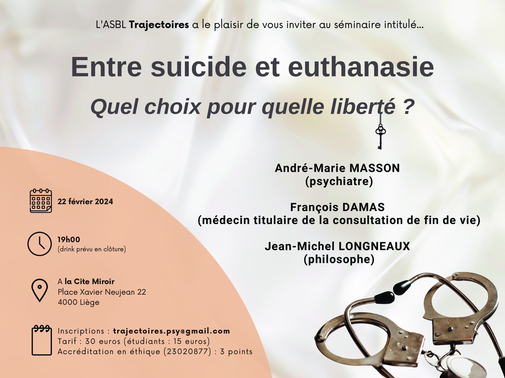 L'invité de cette journée sera le Professeur Jean-Michel LONGNEAUX - docteur en philosophie, chargé de cours à l'UNamur, conseiller en éthique dans le monde de la santé et de l'éducation, et rédacteur en chef de la revue "Ethica Clinica".