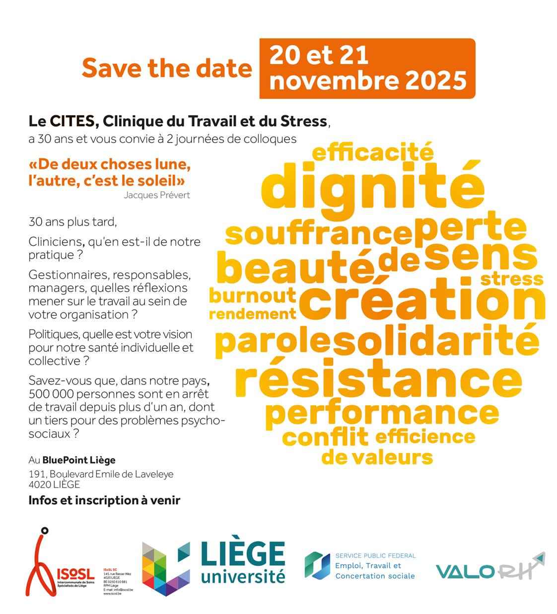 Les 20 et 21 novembre prochains seront organisées 2 journées de colloque à l'occasion du 30e anniversaire de la Clinique du Stress et du Travail.